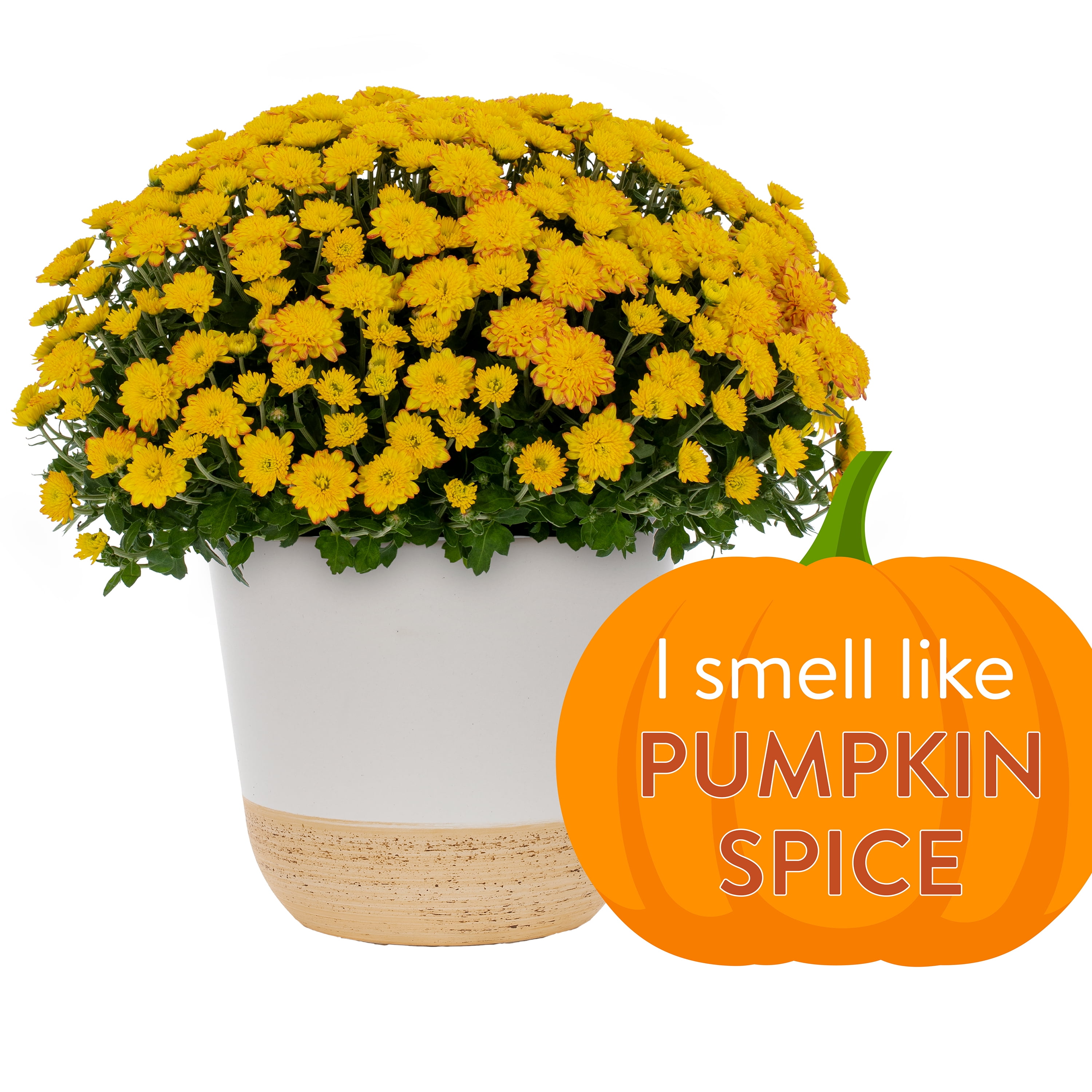 Better Homes Gardens 1gl Pumpkin Spice Scented Orange Mum 1 Count Live Plant With Decorative Planter Walmart Com